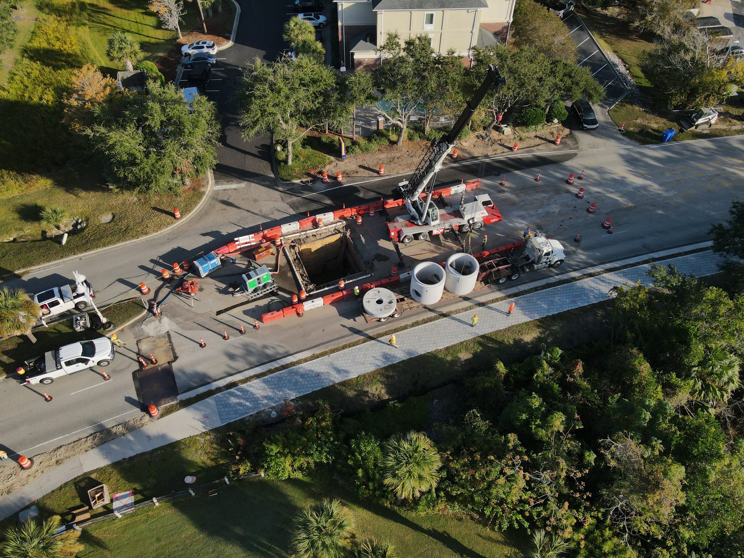 Truluck Construction, Inc. is experienced in all aspects of drainage installation, including stormwater drainage, water, sewer, and box culverts. Our team understands the importance of quality drainage work along with the complexities that regularly come with it. Often, we are able to identify areas for project savings and value engineer these challenges to deliver the best solutions while saving our clients time and money. We coordinate with other construction phases, local municipalities, and engineers to ensure minimal disruption and optimal performance.